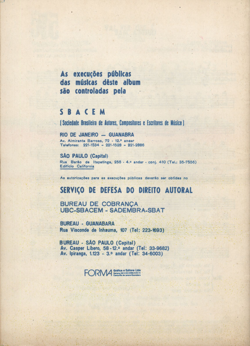 SBACEM - Sociedade Brasileira de Autores, Compositores e Escritores de Música Serviço de Defesa ao Direito Autoral Eu não tenho onde morar Maracangalha |