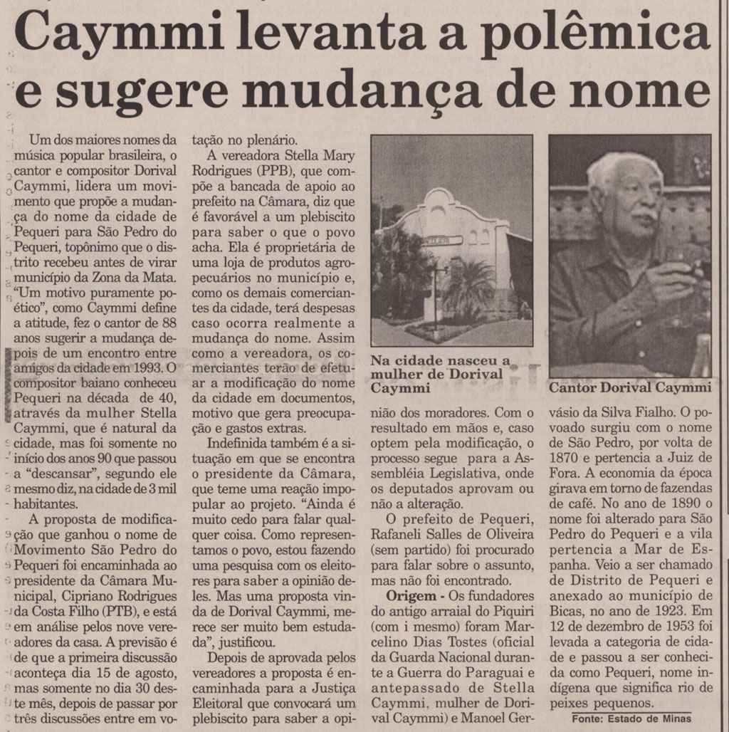Mudança de nome da cidade de Pequeri MARIS, Stella CAYMMI, Dorival |