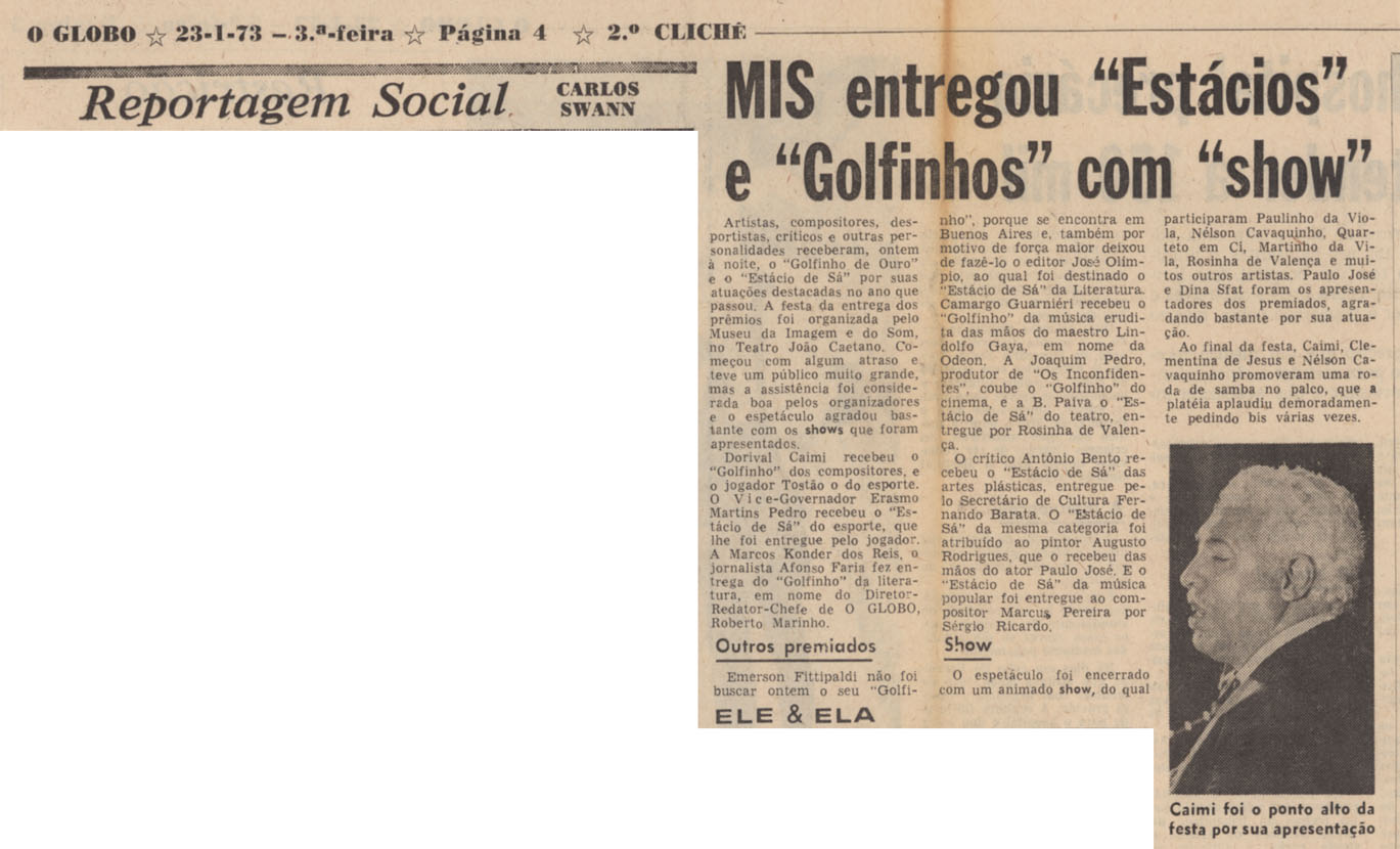 CAVAQUINHO, Nelson TEATRO JOÃO CAETANO CAYMMI, Dorival TROFÉU GOLFINHO DE OURO JESUS, Clementina de |