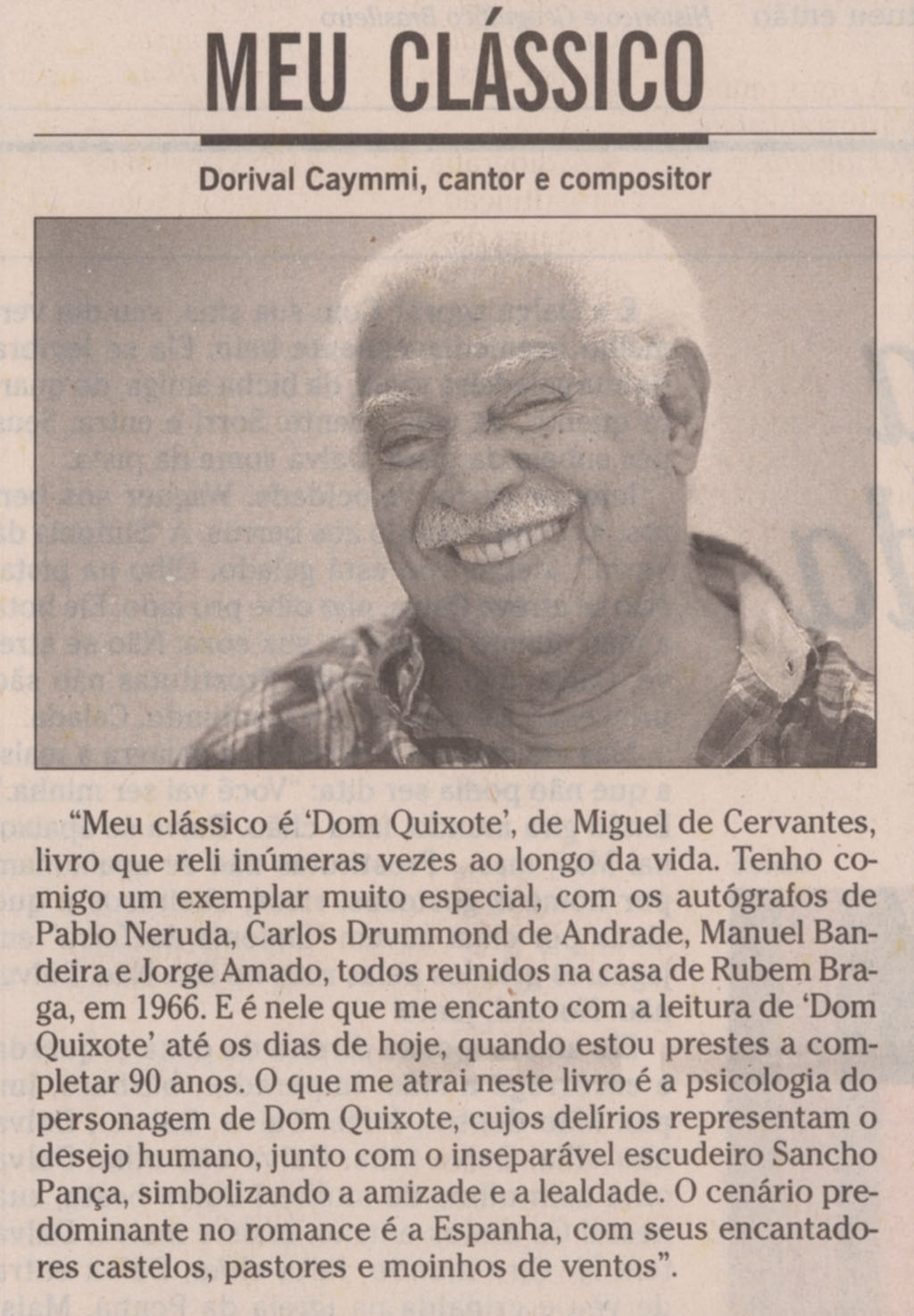 ANDRADE, Carlos Drummond de BANDEIRA, Manuel CAYMMI, Dorival AMADO, Jorge BRAGA, Ruben CERVANTES, Miguel NERUDA, Pablo "Dom Quixote" |