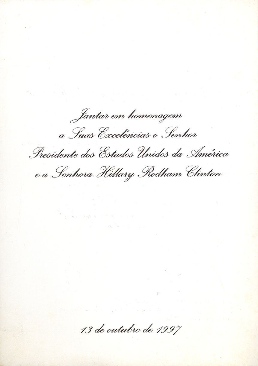 | Abstract: | Convite a Flora Gil para jantar em homenagem a Bill Clinton, na ocasião Presidente dos EUA, e a Hillary Clinton. |