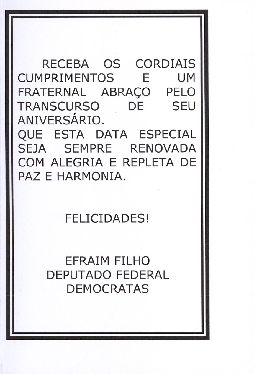 | Abstract: | Cartão de aniversário enviado pelo deputado federal Efraim Filho. |