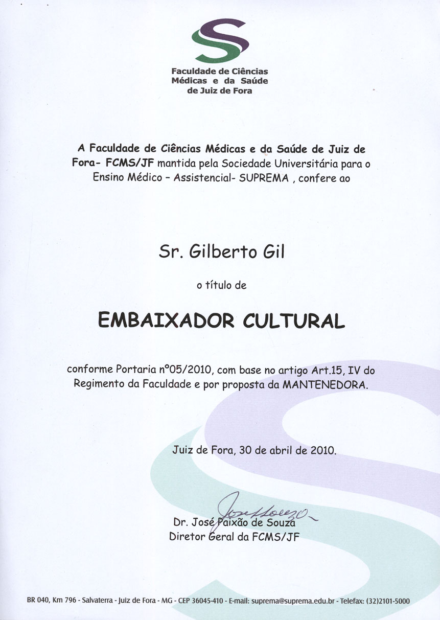 | Abstract: | A Faculdade de Ciências Médicas e da saúde de Juiz de fora conferiu a Gilberto Gil o Título de Embaixador Cultural. |