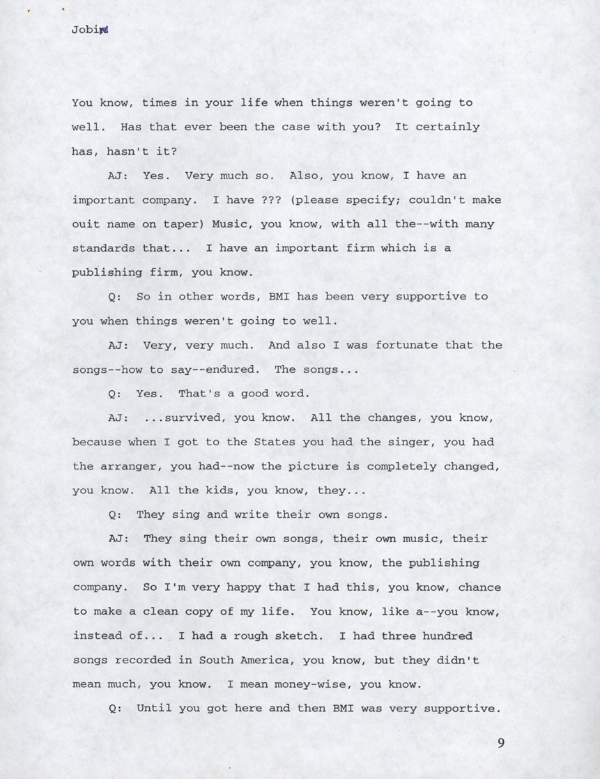 | Abstract: | Transcrição de entrevista de ACJ por Burt Korall. |