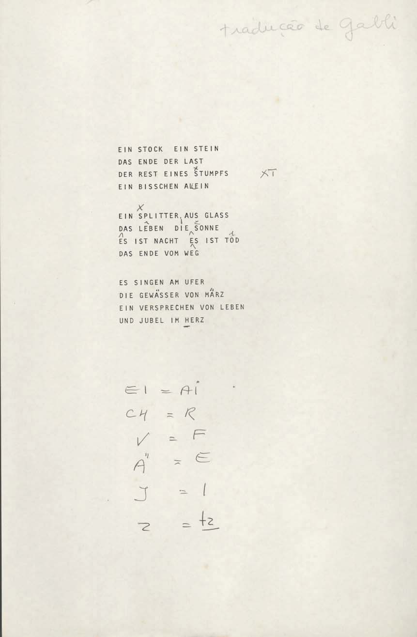 | Description: | A signatária foi identificada apenas como Gabbi, em nota manuscrita de Ana Lontra Jobim. Versão em alemão de "Águas de março" de ACJ, escrita especialmente para apresentação em Viena, Áustria. | |