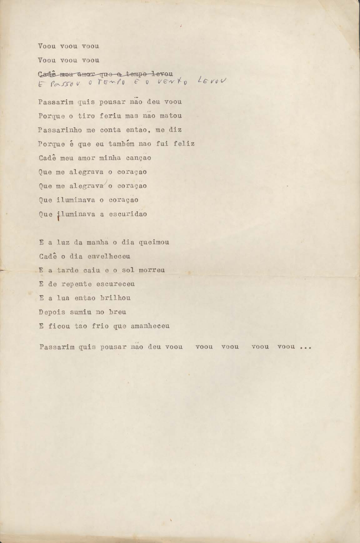 | Note: | "Passarim" foi um dos temas da minissérie O tempo e o vento, da Rede Globo de Televisão, baseado na obra de Érico Veríssimo. A música nunca foi gravada com o título de "Little bird". | |