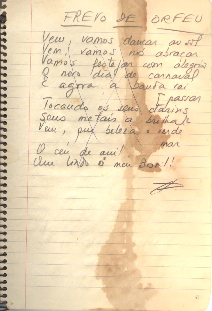 | Abstract: | Esboço da letra de "Frevo de Orfeu" a quatro mãos. |