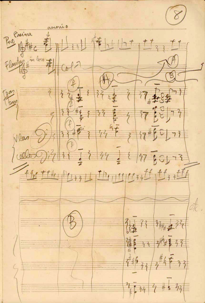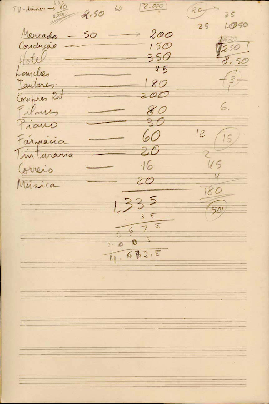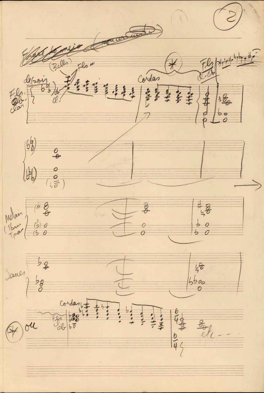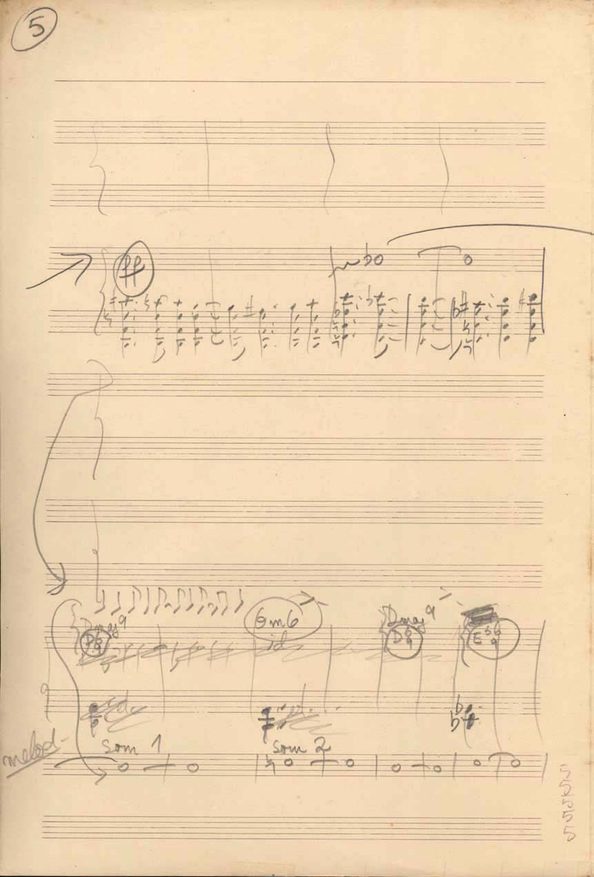 | Note: | A melodia do documento principal é um esboço de "Sabiá" (ACJ e Chico Buarque). Trata-se de esboços de arranjo para os discos "Tide", "Stone Flower" e para a trilha do filme "The adventurers" (Os aventureiros), de Lewis Gilbert, de 1969. A partitura em dó menor (Cm) citada é de "Olha maria" ("Amparo") de ACJ/Vinicius de Moraes/Chico Buarque. A melodia e grade em ré maior (D) é de "Tide", de ACJ. |