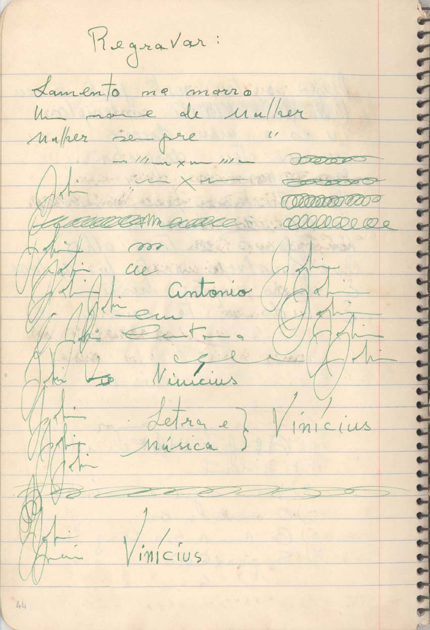Tom Jobim "Um nome de mulher" JOBIM, Antonio Carlos Caderno 05 "Mulher sempre mulher" "Lamento no morro" MORAES, Vinicius de |