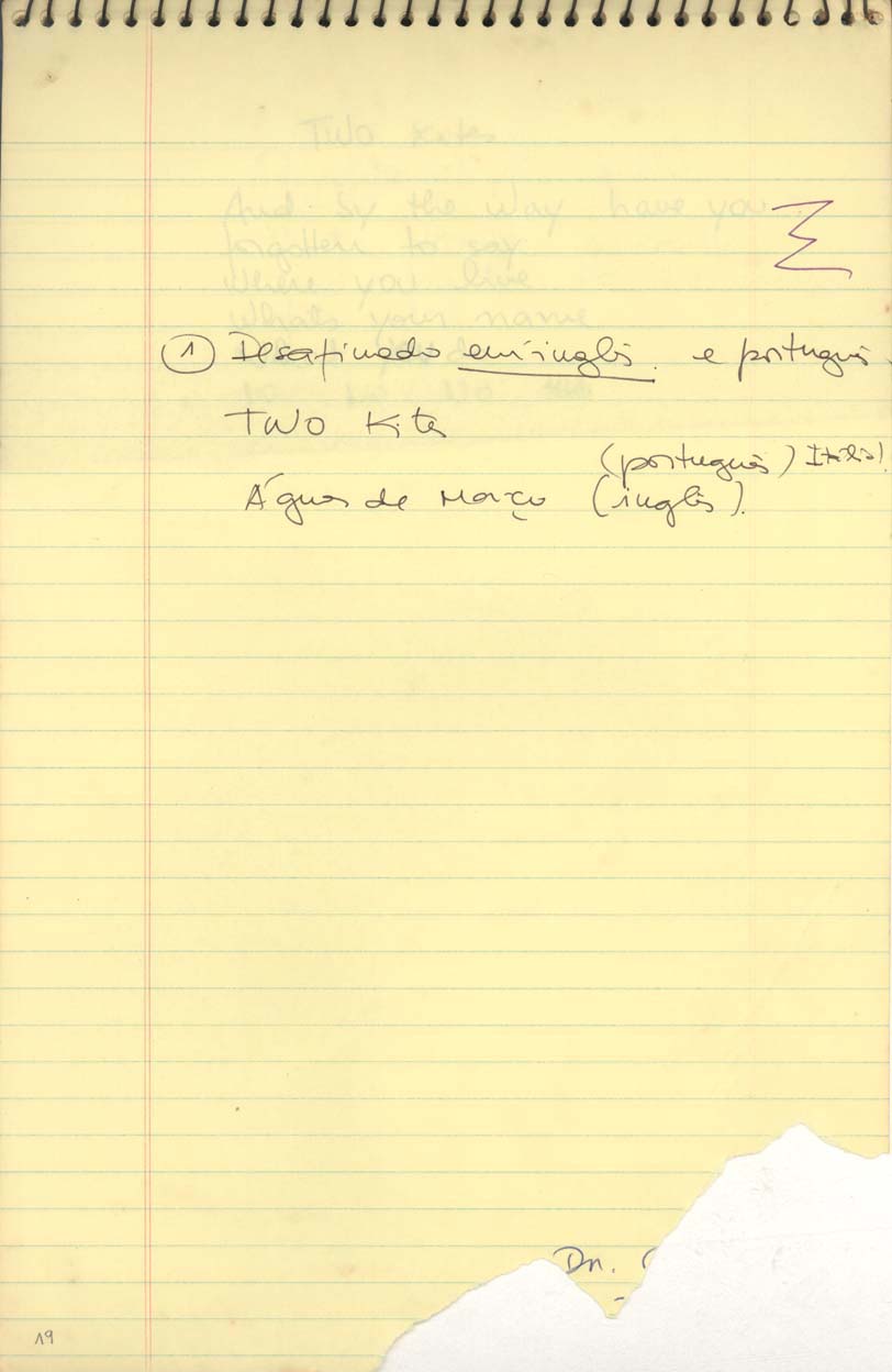 Tom Jobim JOBIM, Antonio Carlos MENDONÇA, Newton "Desafinado" "Two kites" "Águas de março" |