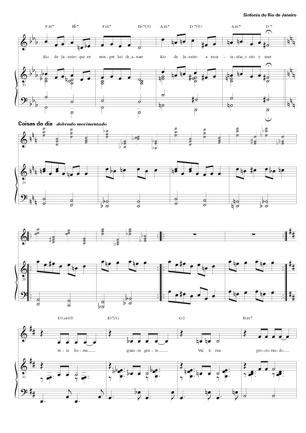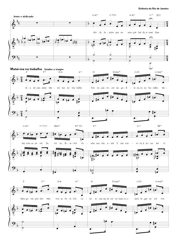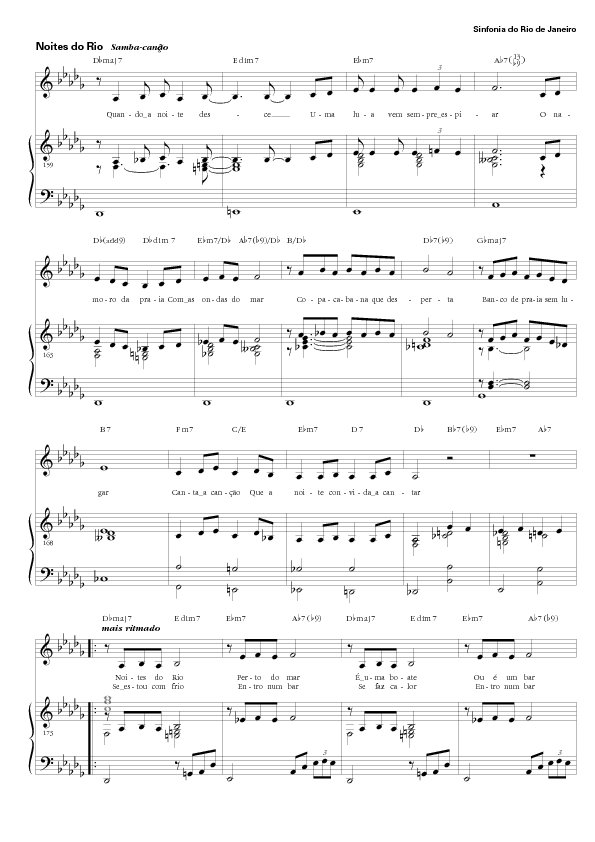 Gravações: Nora Ney (LP - Sinfonia do Rio de Janeiro / 1954, remasterizada no CD A. C. Jobim - meus primeiros passos e compassos / 1997), Agostinho dos Santos (LP - O inimitável Agostinho / 1959), Maysa LP - Tom Jobim e Billy Blanco / 1960), Lana Bittencourt e Haroldo de Almeida (LP - Sinfonia do Rio de Janeiro / 1965).