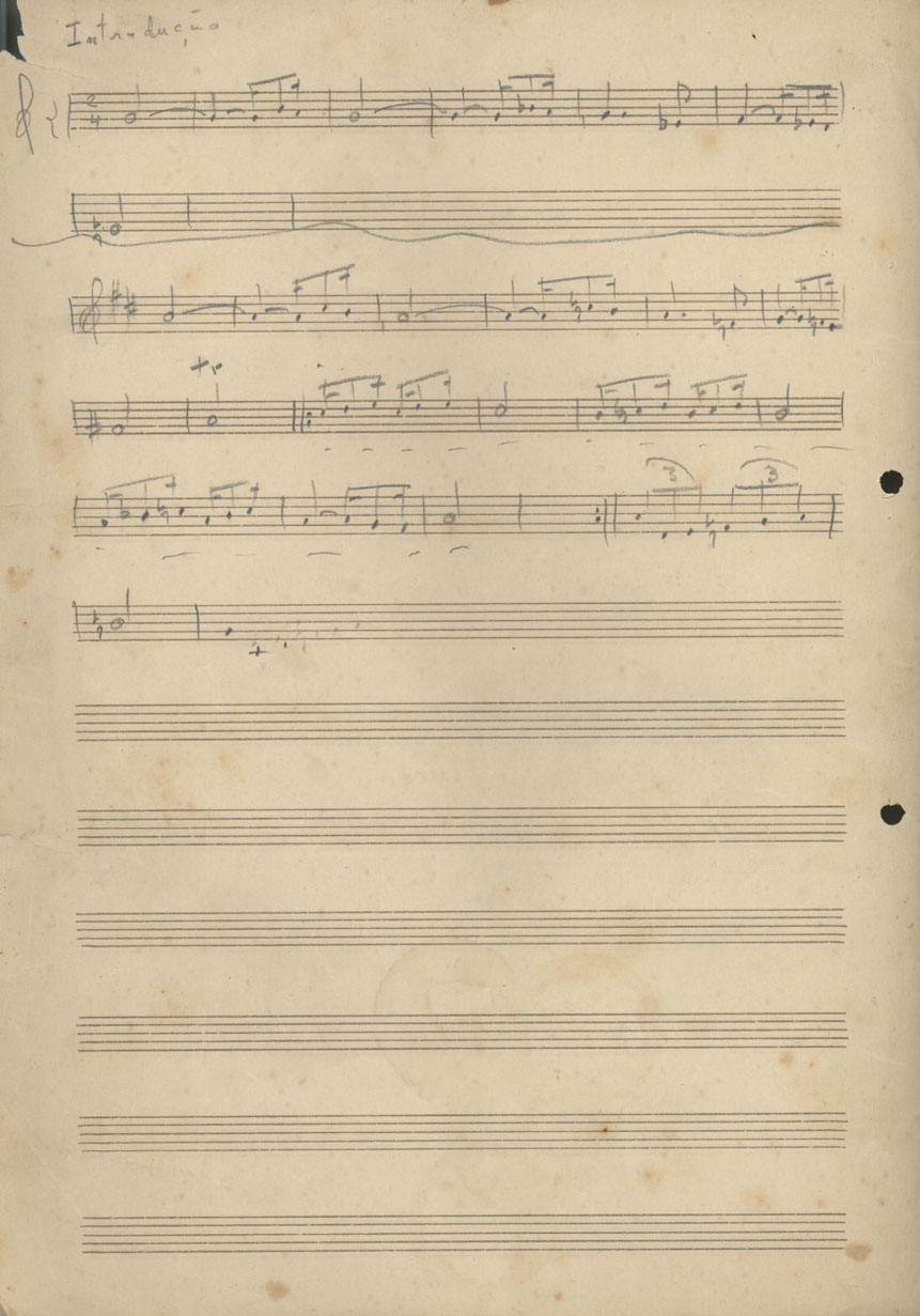 | Description: | No verso há dois rascunhos de "Introdução" - em dó maior (C) e em ré maior (D). |