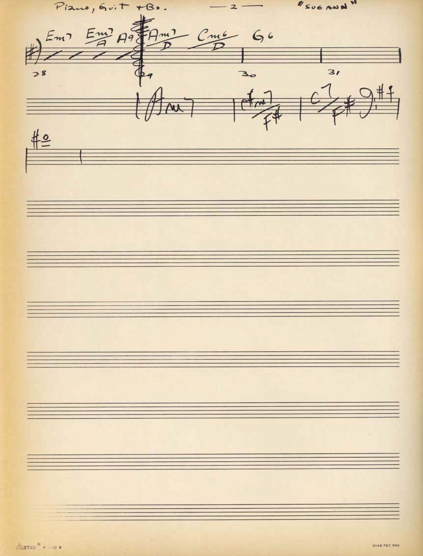 2 fls.; piano/guitarra/baixo em sol maior (G), 2 fls.; guitarra em sol maior (G), 2 fls. 23,4x32,5cm; 24,2x31,8cm.