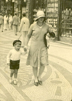 Abstract: | Antonio Carlos Jobim passeando com a mãe Nilza Brasileiro de Almeida pelo centro da cidade, avenida Rio Branco. |