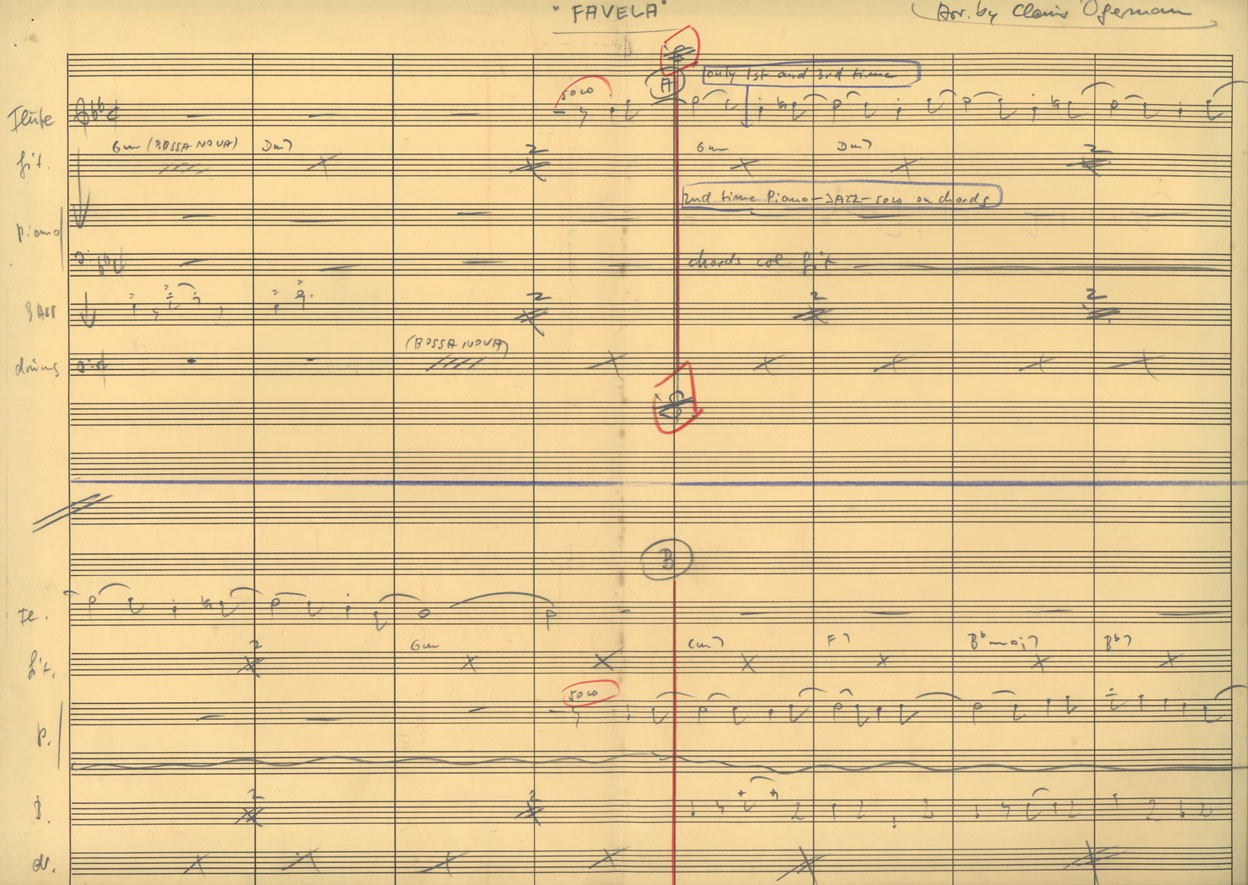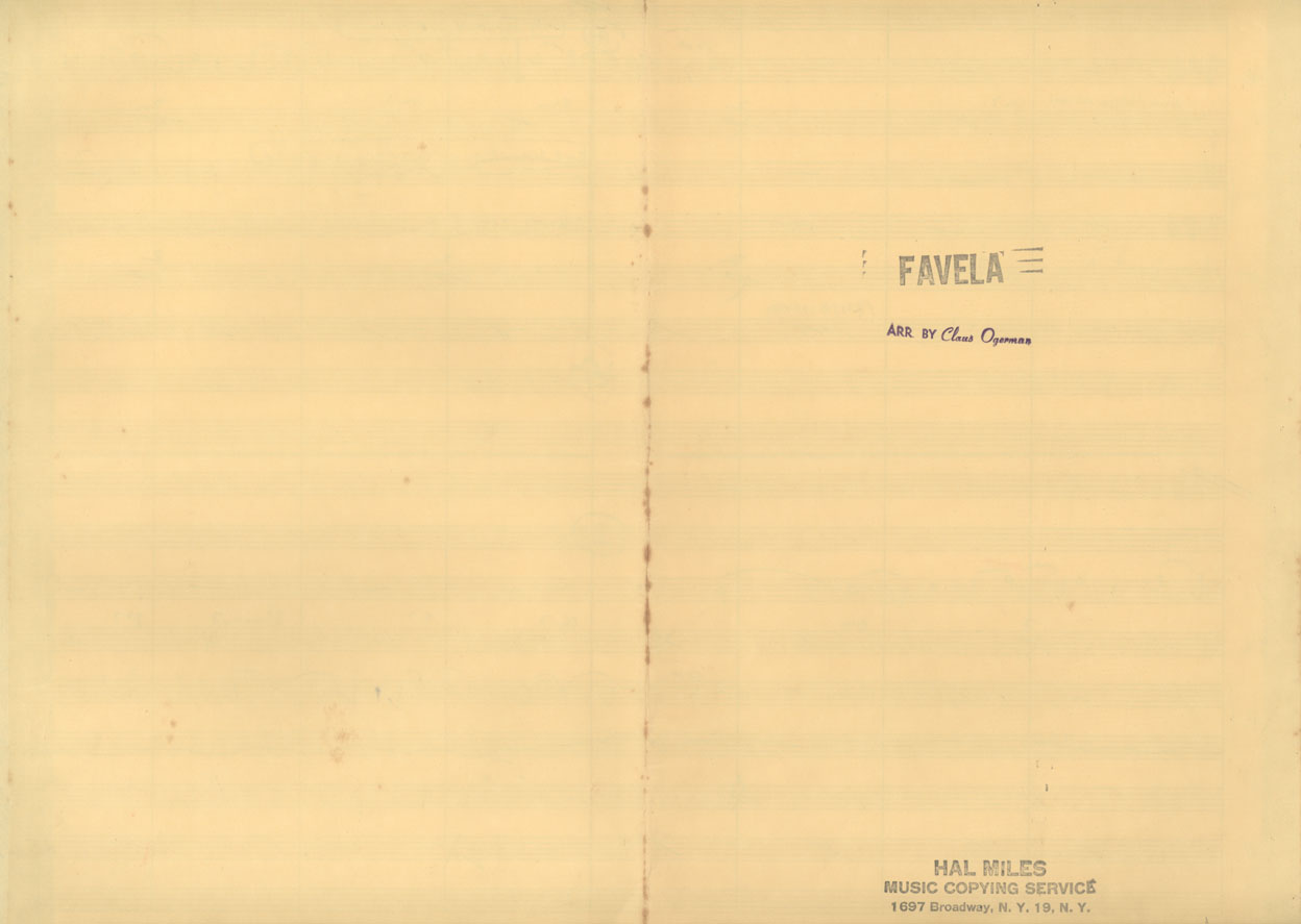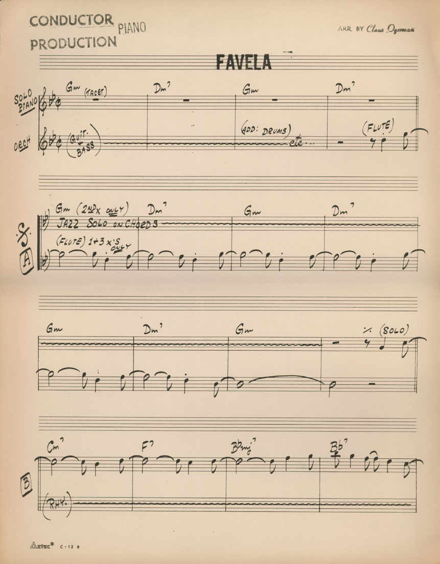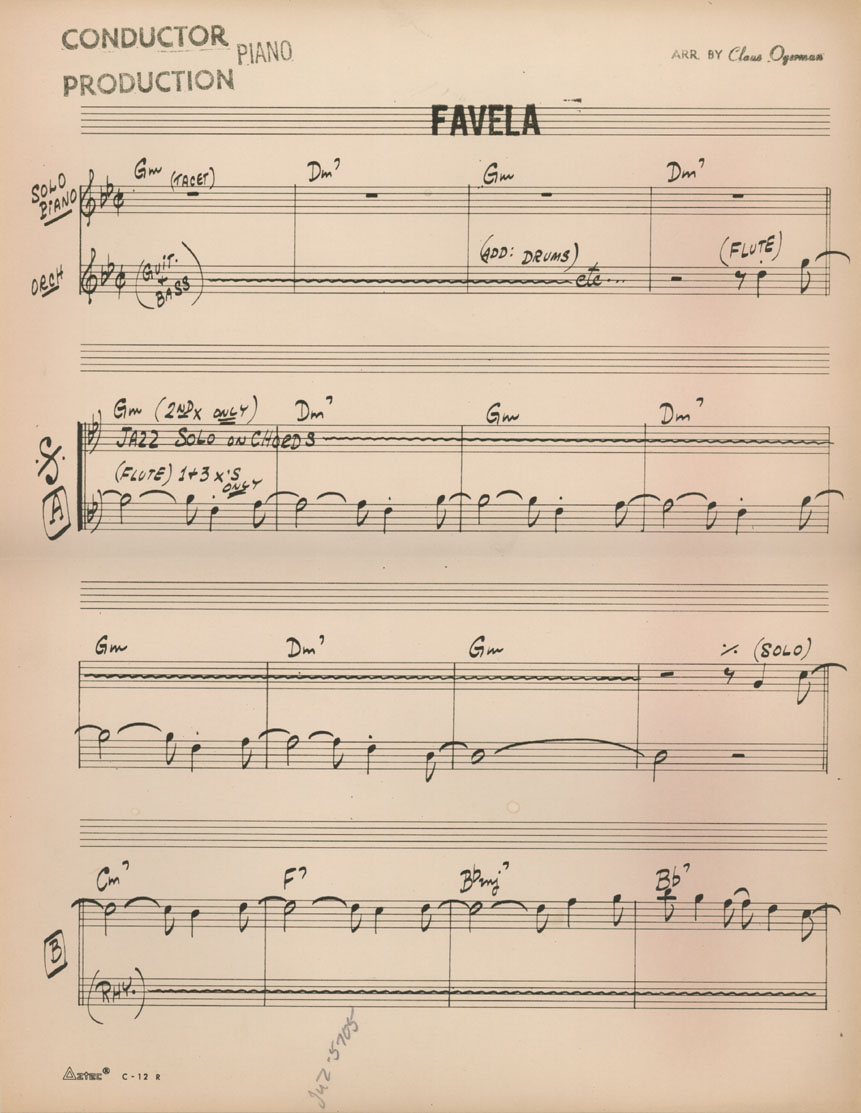 | Note: | Arranjo gravado no disco Antonio Carlos Jobim - the composer of Desafinado, plays, 1963. - Nome na partitura: Favela | |