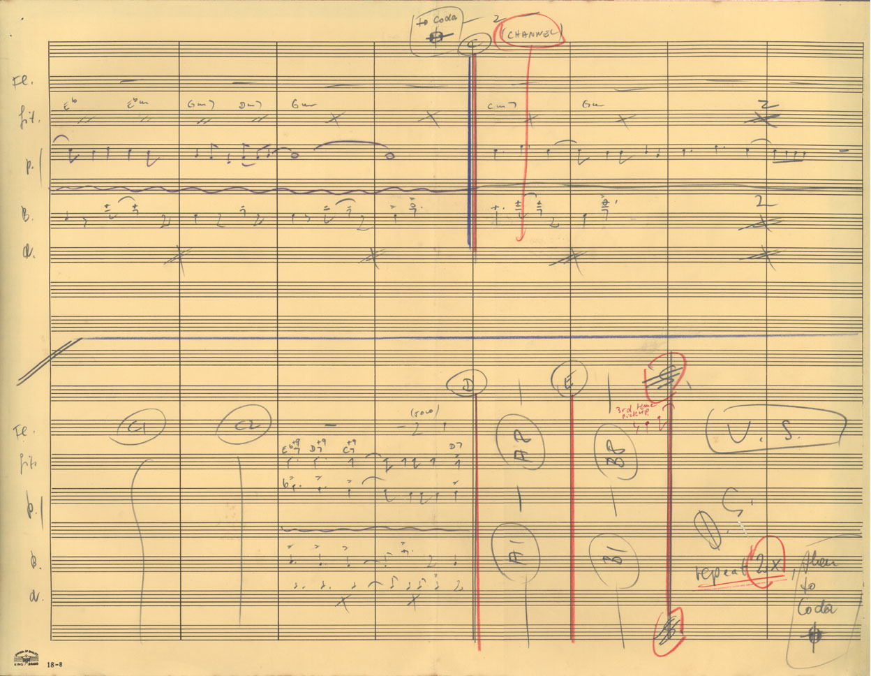 2 fls.; guitarra, 2 fls.; contrabaixo, 2 fls.; bateria, 2 fls.