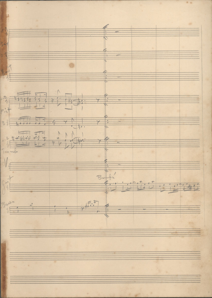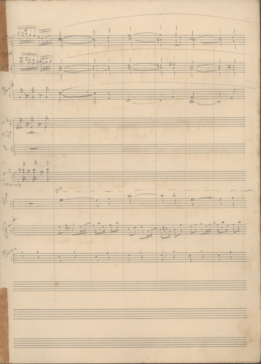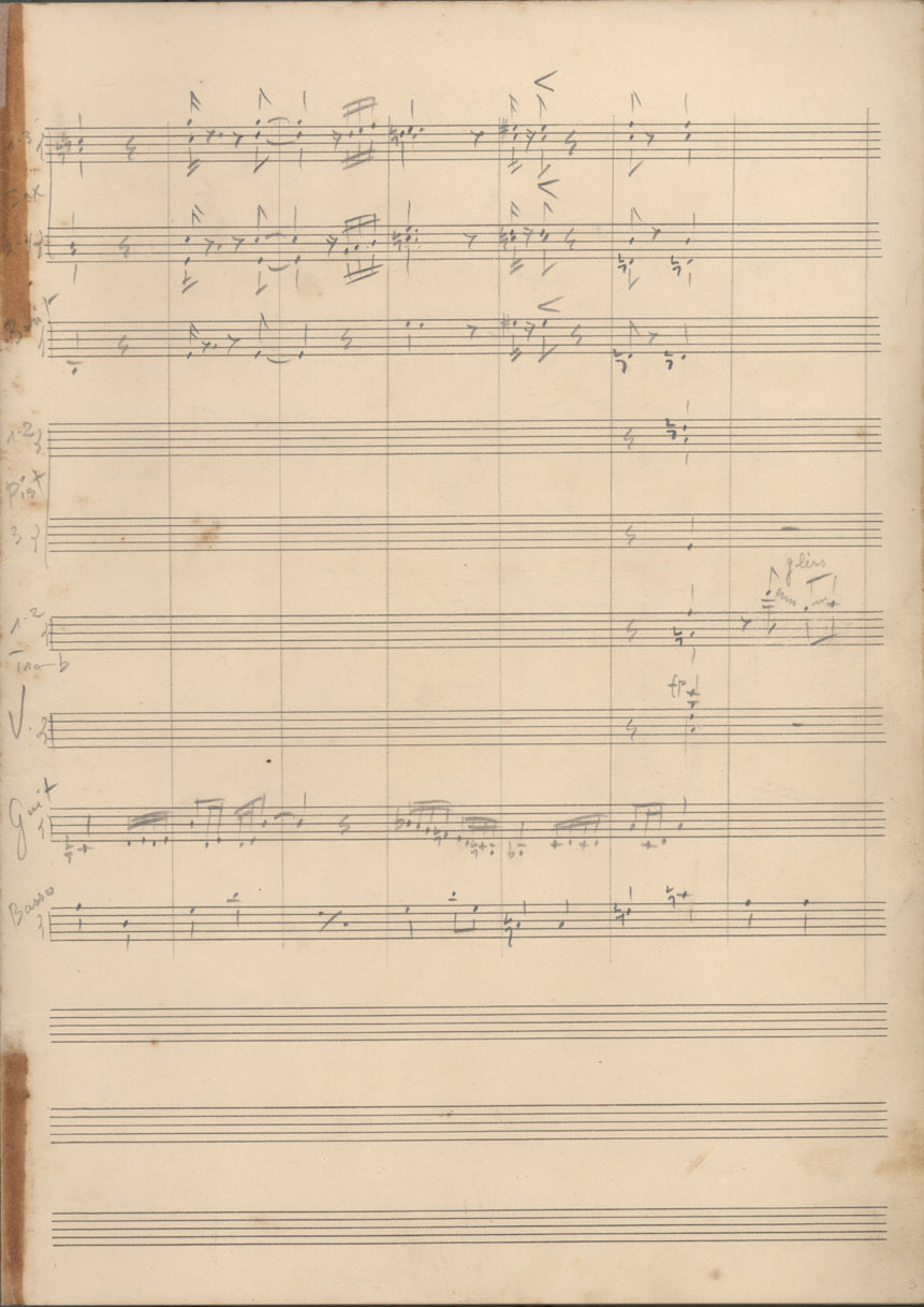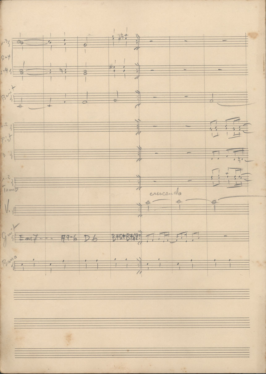 | Abstract: | Partitura em ré maior (D) para cinco saxofones, dois trombones, três trompetes, oito violinos, guitarra e contrabaixo. | |