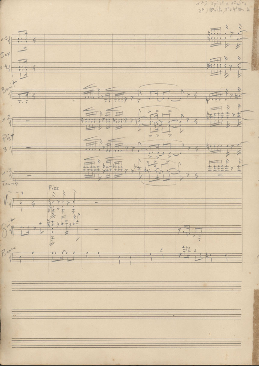 10 fls.; trombone, 4 fls.; trompete, 6 fls.; contrabaixo, 2 fls.