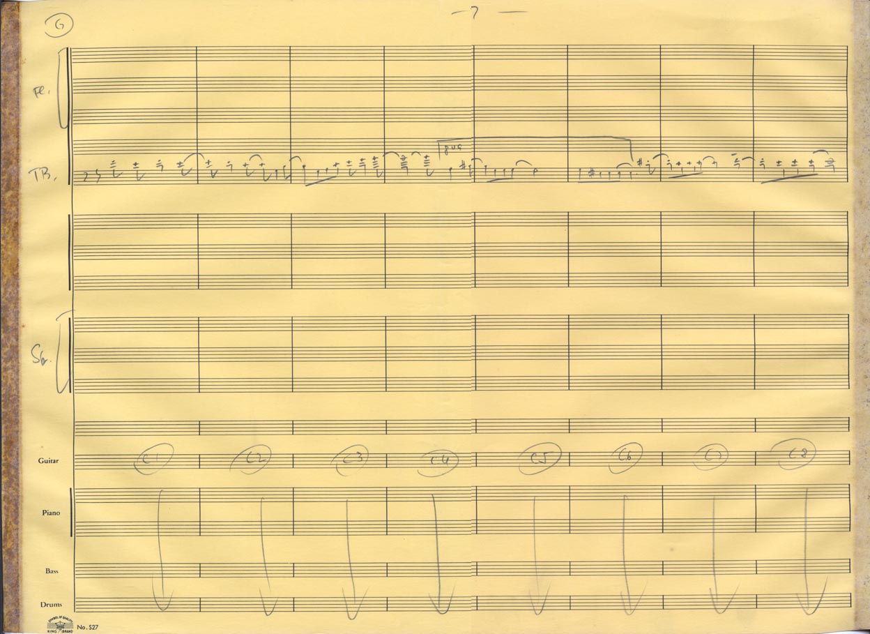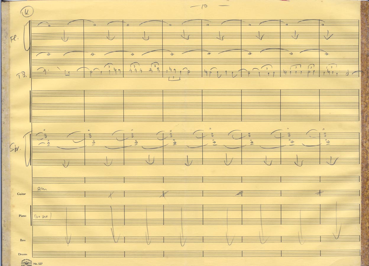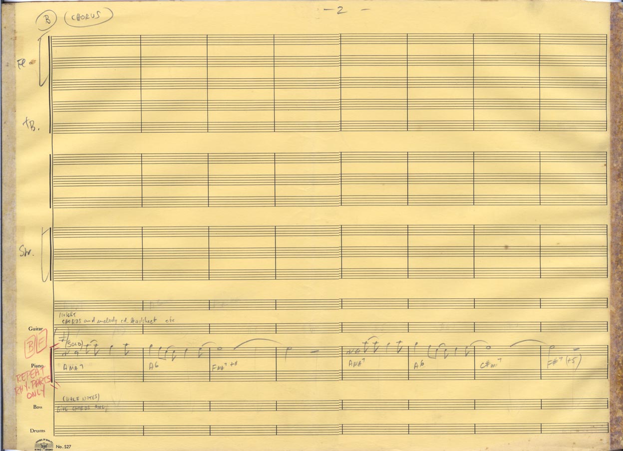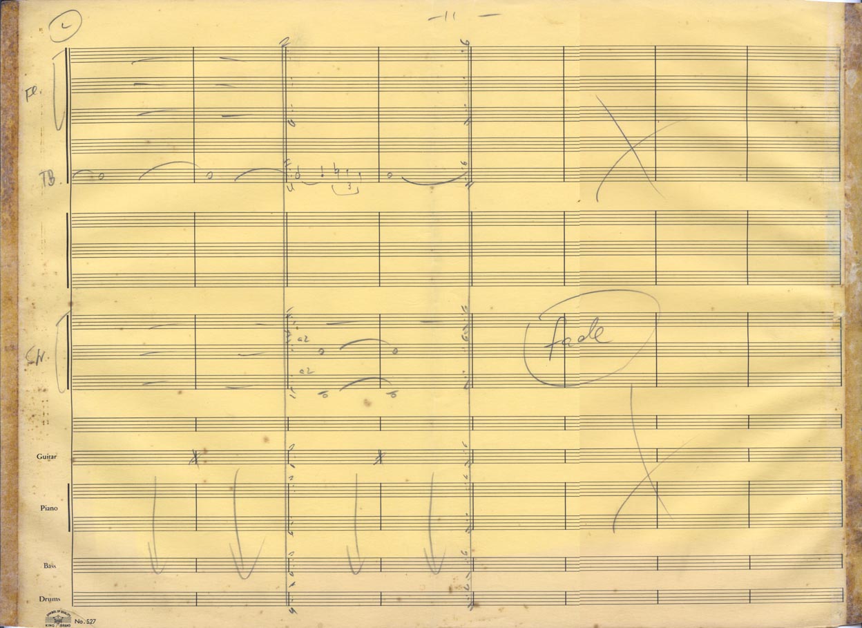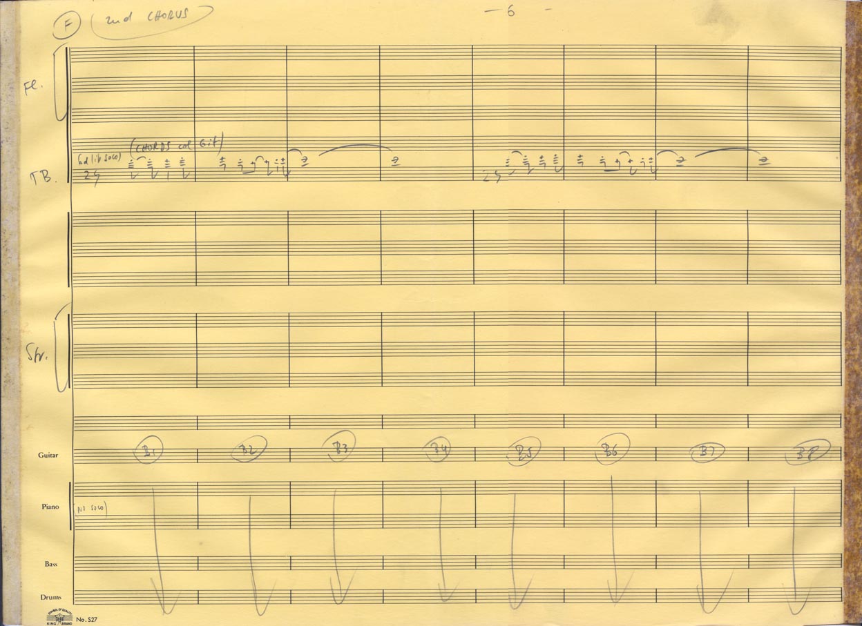 2fls.; 2ª flauta, 2 fls.; 3ª flauta, 2fls.; trombone, 2 fls,; violão, 2 fls.; violino, 2 fls.; violoncelo, 2 fls.; contrabaixo, 2 fls.; bateria, 2 fls.,; piano, 2 fls., 24x31cm.