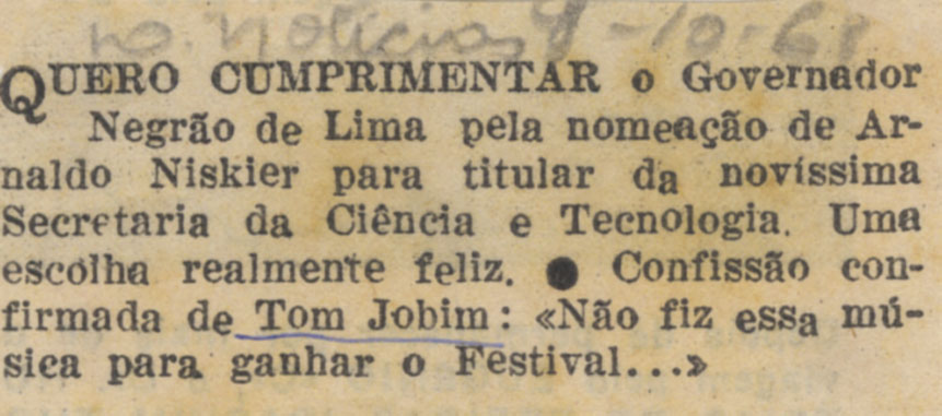 Tom Jobim LIMA, Negrão de NISKLER, Arnaldo JOBIM, Antonio Carlos Secretaria da Ciência e Tecnologia |