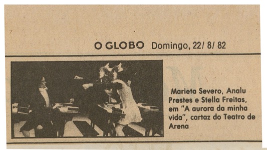 ESPETÁCULO A AURORA DA MINHA VIDA DIREÇÃO E CENÁRIOS: NAUM ALVES DE SOUZA ASSISTENTE DE DIREÇÃO: ROBERTO ARDUIN LEDA SENISE FIGURINO SAMUEL KERR DIREÇÃO MUSICAL ASSISTENTE DE DIR.MUSICAL: MARCOS LEITE PIANISTA PAULO HERCULANO ILUMINAÇÃO ZÉ AUGUSTO PEDRO PAULO RANGEL CARLOS GREGÓRIO ROBERTO ARDUIM MÁRIO BORGES STELLA FARIAS CIDINHA MILAN ANALÚ PRESTES TEATRO BRASILEIRO TEATRO DE ARENA |