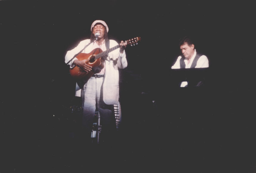| Abstract: | Milton Nascimento durante show de celebração dos 70 anos do jornal O Globo, em 1995 no Metropolitan, com um pianista. |