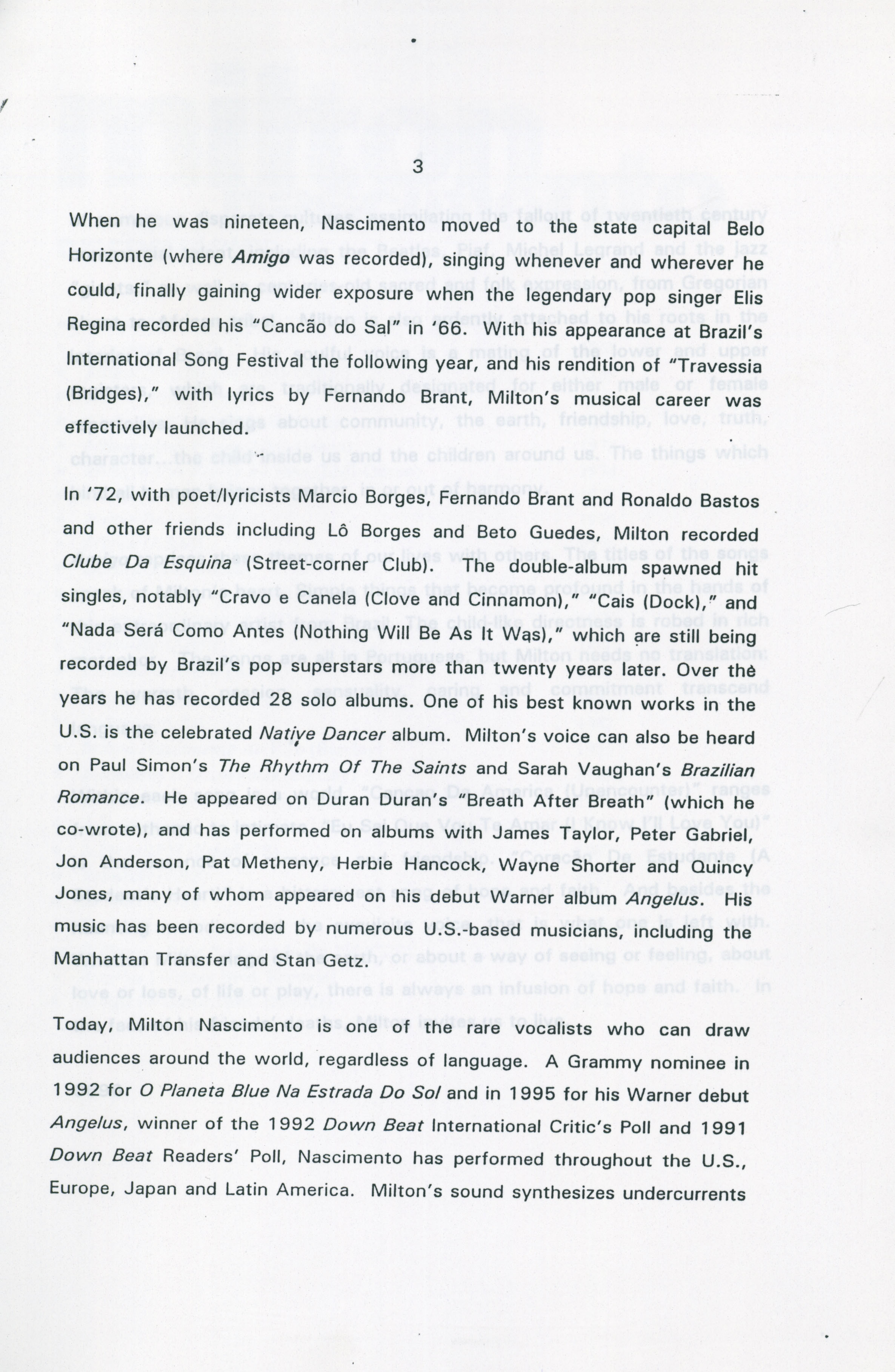 | Title: | "Amigo Milton Nascimento" |