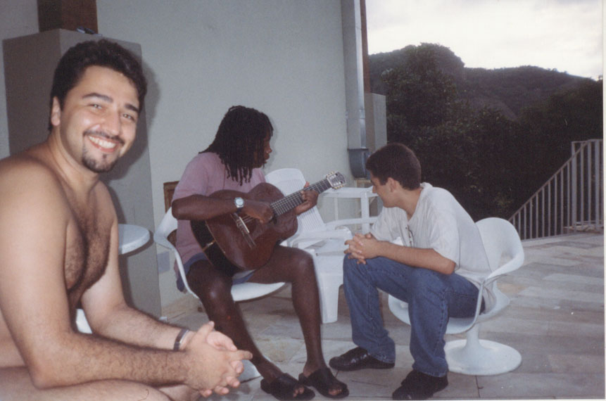 | Abstract: | Milton Nascimento com pessoas identificadas apenas como Sérgio (sem camisa) e Rizzo, em sua casa no Rio de Janeiro. |