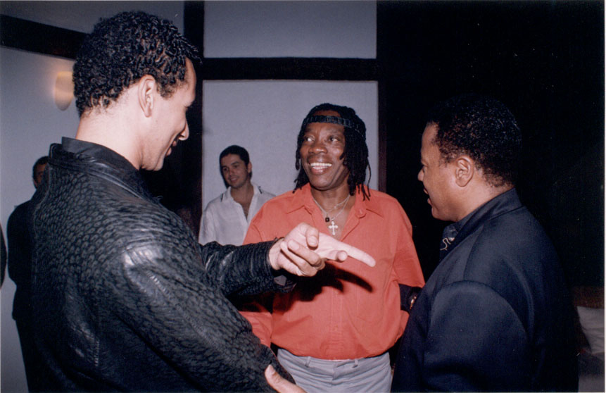 | Abstract: | Milton Nascimento ao lado de Wayne Shorter e de pessoa não identificada durante festa de aniversário. |