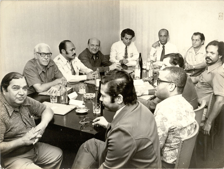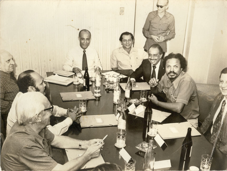 | Abstract: | Paulo Moura (do lado direito da mesa) durante uma reunião do Conselho da Ordem dos Músicos do Brasil (OMB). |